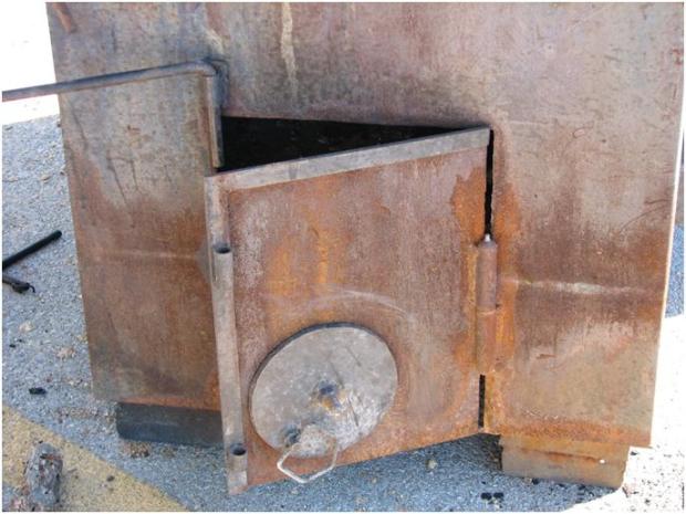 The hole that goes to the firebox lends itself to direct flames on the meat. Direct flames create carbon, which is NOT GOOD TO EAT. A closer look at the firebox and the hole that goes to the smoking chamber (where you put the meat) shows the inefficiency of the design: