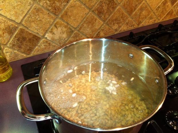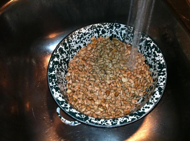 Then the casings have to be filled.  What are casings?  Well…if you don’t know, it’s probably best I don’t explain it.  Let’s just say that the sausage is all natural.  The casings are soaked in warm water: