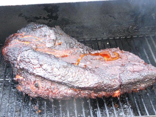 Doesn’t really matter. When you go to pick it out, what you are going to be looking for is a solid cap of fat on the backside of the brisket (they always put the label on the opposite side because it’s prettier). I had someone tell me one time that they went to Central Market and bought a “prime” brisket. I’m not sure that it even exists. This is meant for trashy cuts of beef, so the sinewy-est, fatty, marbled up slab of brisket you can find is perfect. If you spend more than $2.50/lbs for your brisket, you got taken. Look for it on sale, and buy it when it’s around $1/lbs and freeze it.