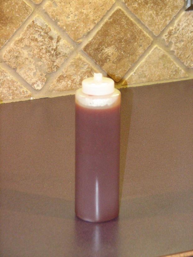 I love these containers for serving sauce. You can get them for about a buck at Bed, Bath, and Beyond or any other kitchen store. Use a funnel to avoid a mess.