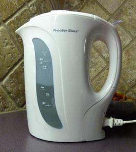 Electric kettle – this rocks. The best $11 I spent at a hardware store. I use it every day sometimes more. I make pressed coffee in the morning and in the evenings I have a little hot cocoa or a decaf coffee. This kettle works great – heats up very quickly, faster than the microwave.