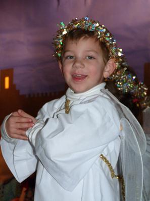 Today was Jdub’s third [and last] Christmas program at his preschool. This year he graduated to being an “Angel” complete with a speaking part.