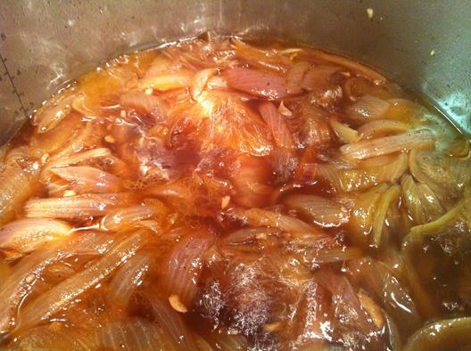 Notice the line on the inside of the pot where the original level of the wort started. We’ve reduced down considerably, concentrating the smells, sugars, and flavors of the wort.