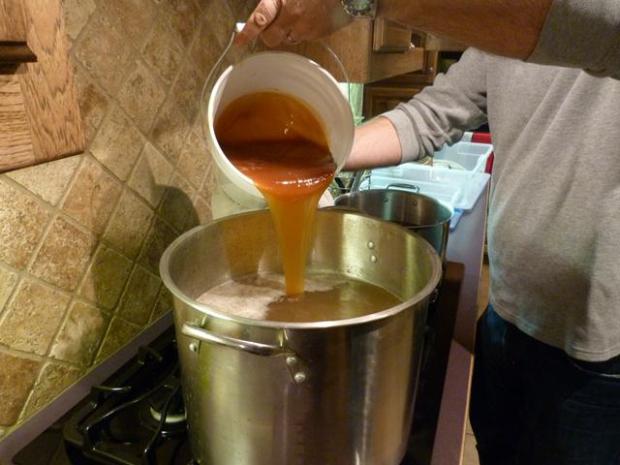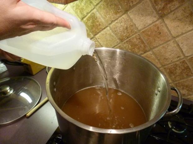 Top off to 3 gallons of water for the boil. We’ll bring this up to a boil…