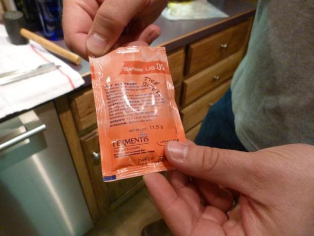-a packet of dry ale yeast (ale yeast ferments from the top down vs. lager yeast that ferments from the bottom up, so we don’t have to stir it in)