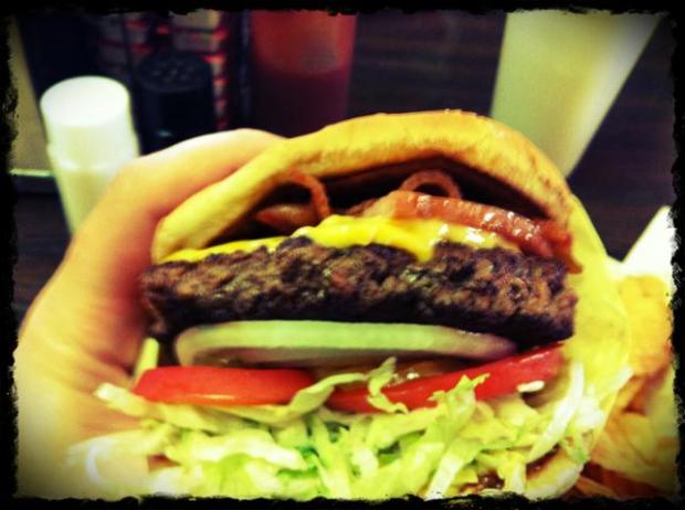 This thing is massive, and it’s the smaller version of their famous burger. If you can get your hands around it, you may have to give it a squeeze to get it into your mouth.