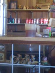 You want tea or cokes? The owner, Bob, offers that, too. He will refill your tea glass for you, but it’s all unsweet so you have to spice it up yourself. Cokes are charged by the can, and they have three or four different types of “cokes” here. (In Texas, any type of soda is a “coke”. We often ask, “What sorta coke you want? Dr. Pepper?” )