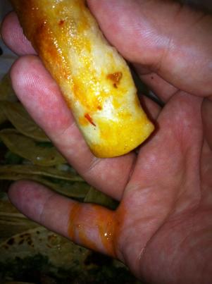 Which is powered by a water hose attached to a water faucet outside. It’s a pretty cool system…the pressure on the water builds up, you slowly release the water into the barrel and the sausage shoots out of the cap: